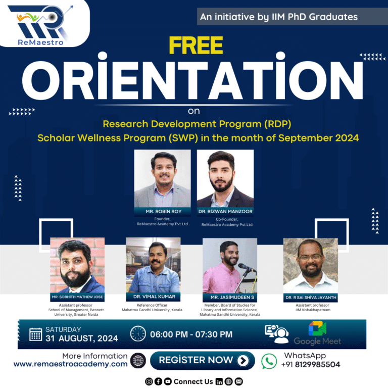 ReMaestro Academy aims to Refine Research and Master Global Scholarship by offering cutting-edge guidance to scholars. We promote interesting, important, and impactful research outcomes, inspiring meaningful contributions across commerce, management, and social science disciplines through innovative, excellence-driven research support and holistic academic mentorship.