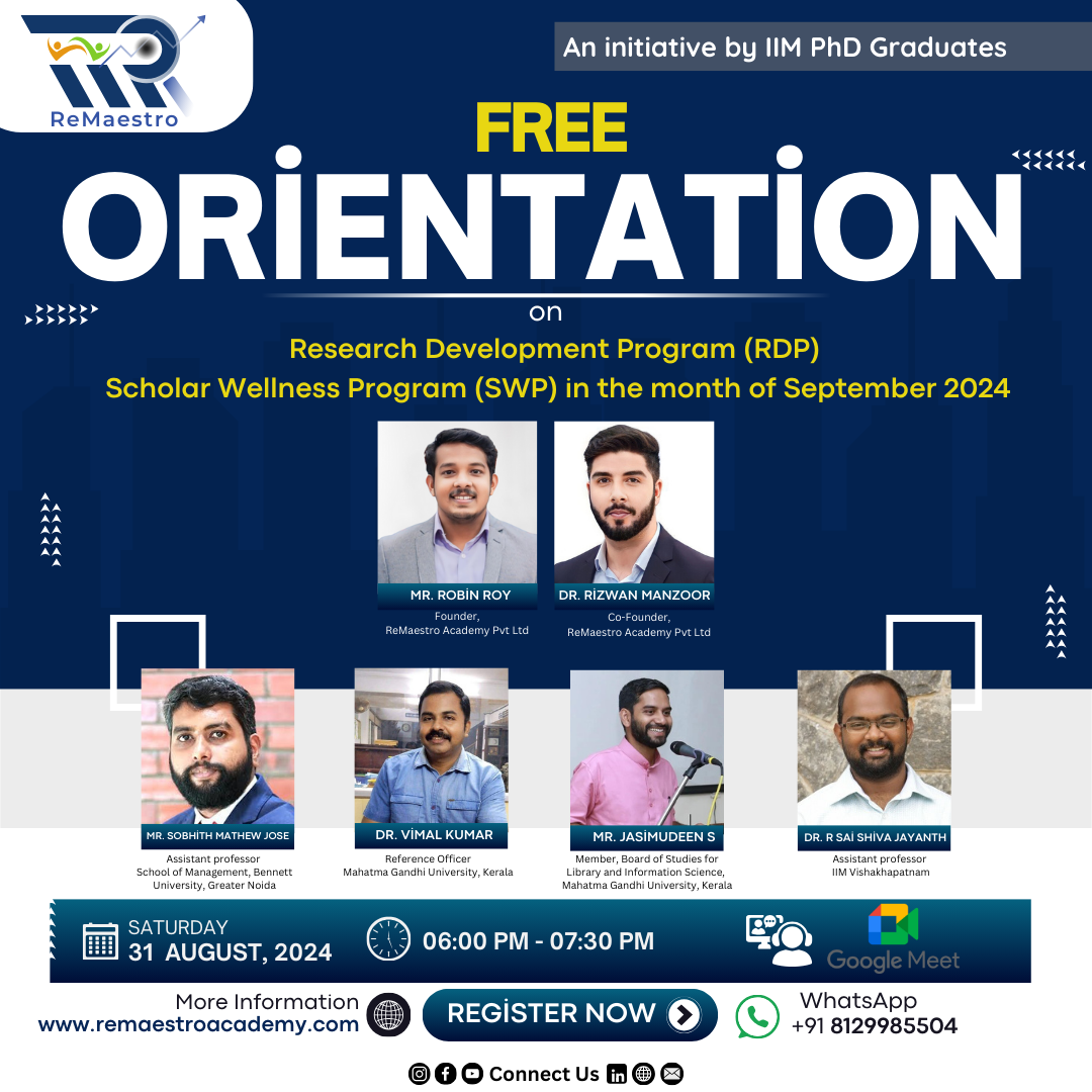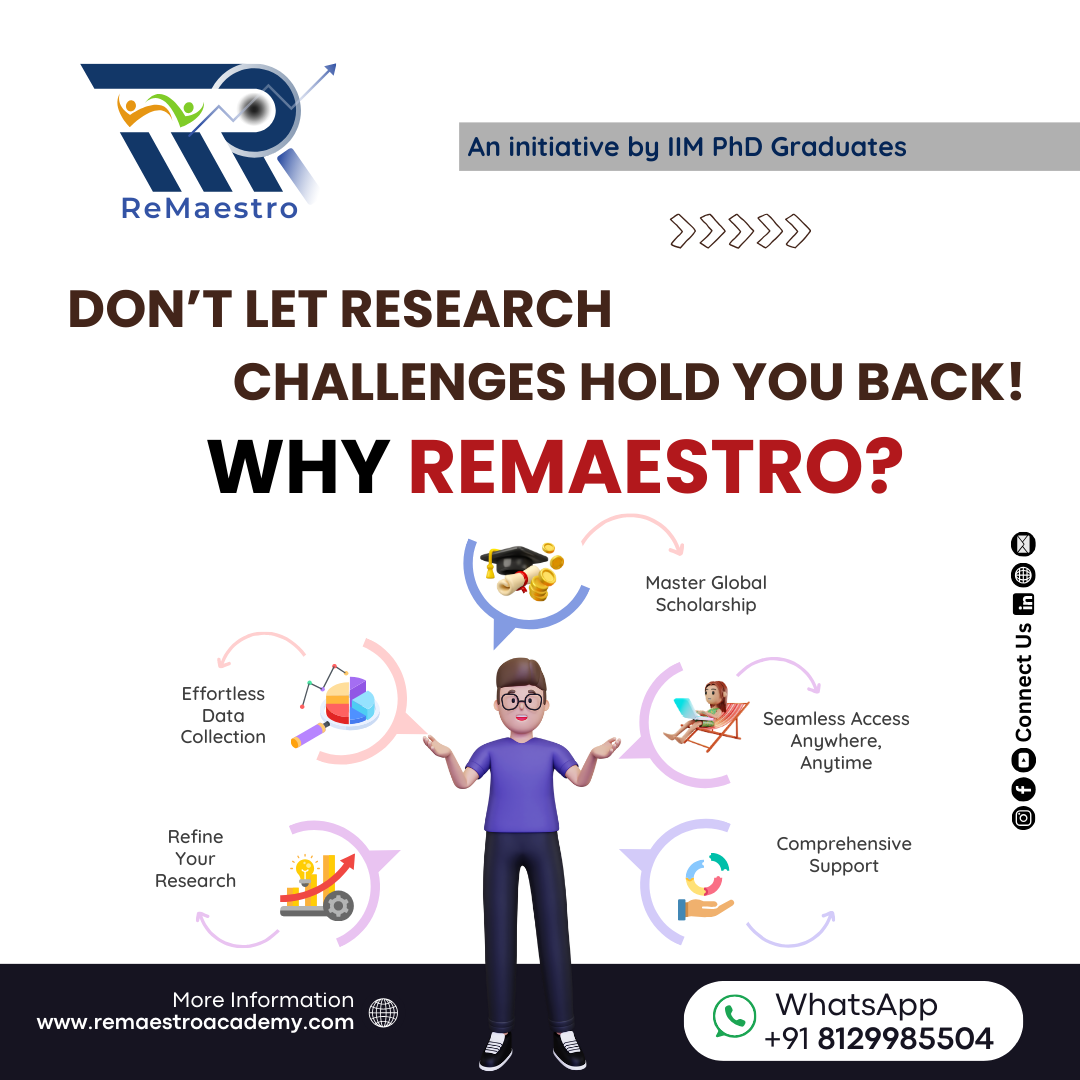ReMaestro Academy aims to Refine Research and Master Global Scholarship by providing cutting-edge guidance to scholars.We strive to promote interesting, important, and impactful research outcomes, encouraging meaningful contributions across commerce, management, and social science disciplines through excellence-driven and innovative research support.
